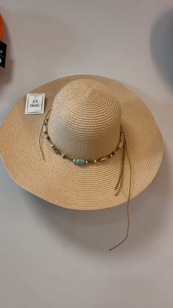 Sombrero de ala ancha en tono natural 🌾🤍, con detalle de cuentas que aporta un toque bohemio y elegante, ideal para días soleados ☀️✨